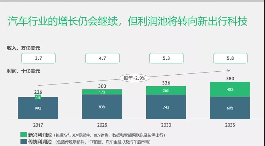 汽車行業產生的收入將繼續增長,未來幾年傳統業務仍將是主要的利潤組成部分,新興“利潤池”的增長速度業相對較慢。